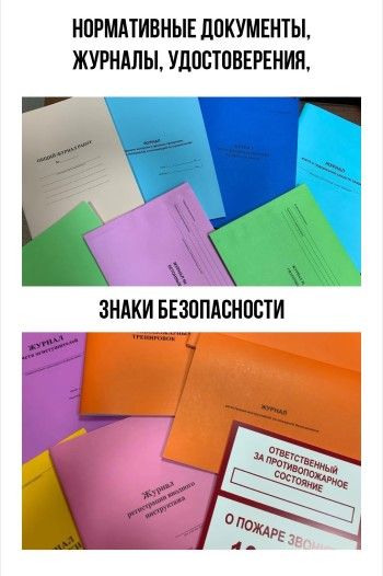 Нормативные документы, журналы, удостоверения. Знаки безопасности.
